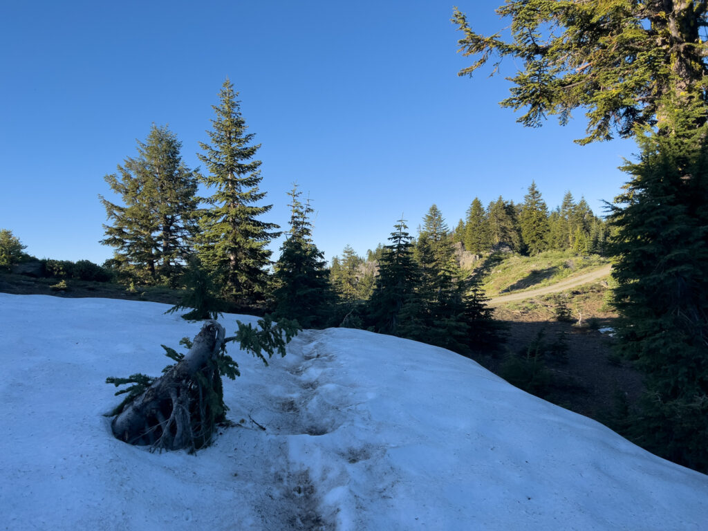 Auch heute führt der PCT wieder über einige Schneefelder an Nordhängen.