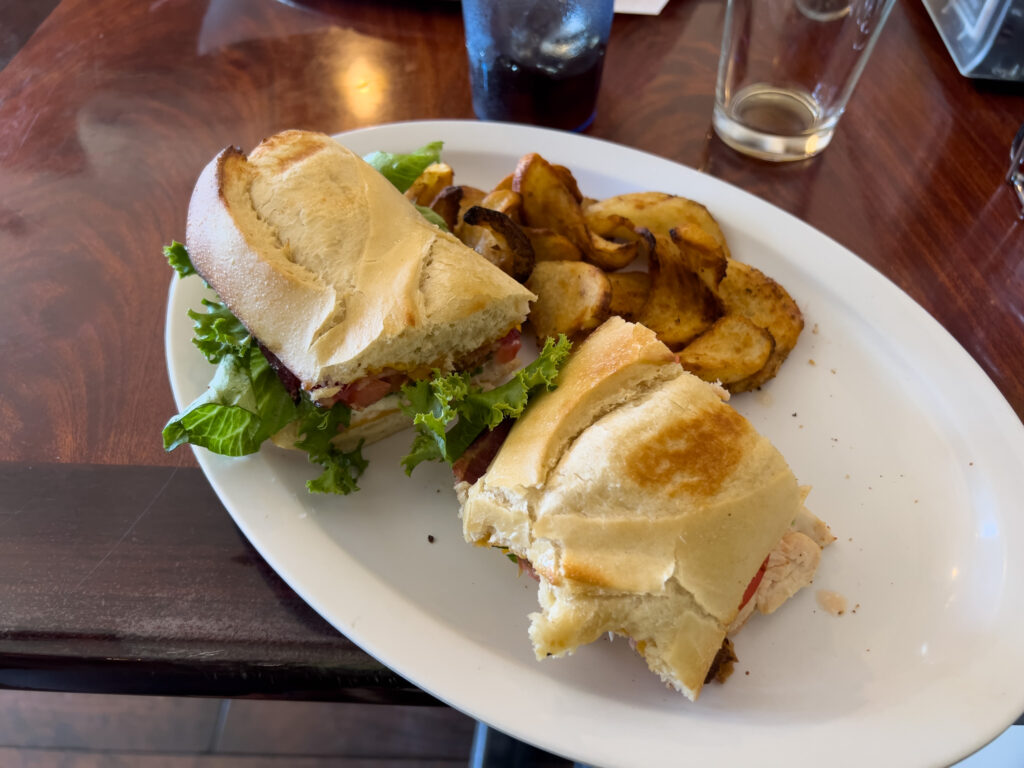 Doch zuerst gibt es nun eine kurze Pause vom Wandern und ich geniesse den Town Food. Beef Sandwich mit Pommes