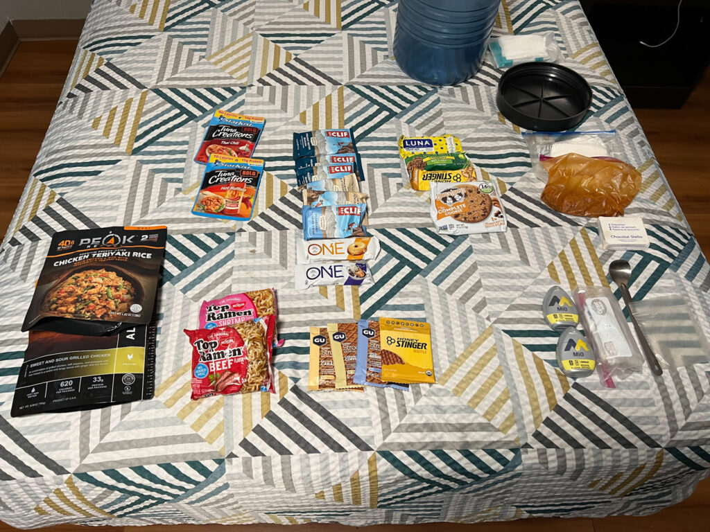 Und nochmals Essen und Snacks für 5 Tage, sowie meine Mikrospikes, meine 2. Windschutz Jacke und mein ursprünglicher Hut mit den Pins darin sowie meinen Bärensack habe ich per USPS nach Stehekin voraus geschickt