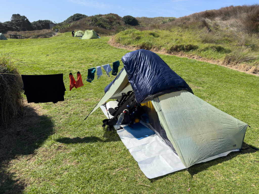 19:00 Uhr. Ich mache mich bereit fürs Schlafen, das heisst Zähneputzen und ich ziehe mein Pyjama (lange Icebreaker Shirt und Hose) an. Dann gehe ich in mein Zelt und entwerfe den Text für diesen Blogbeitrag.